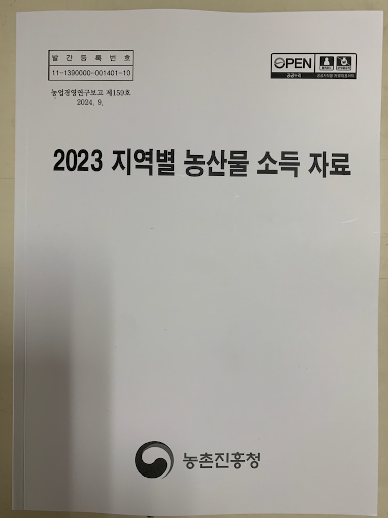 지역별농산물소득자료 2023(チヨクピョルノンサンムルソドゥクチャリョ イチョンイシプサム)