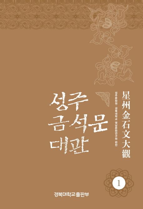 紹介文(目次) 1945年以前に作られた現星州地域に存在する金石文のほとんどが網羅される。当該金石文ごとに詳細な位置情報と説明、実物写真と拓本イメージ、原文と翻訳文全文が載る。また、星州金石文の性格と価値、そして金石文の現代的活用方案を盛り込んだ慶北大学チョンウラク教授の解題が収録される。